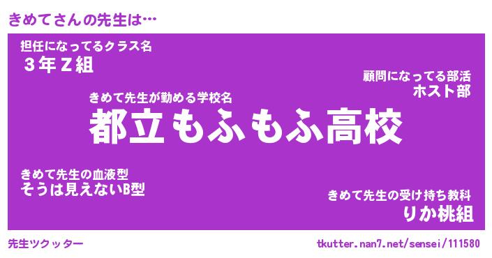 | ファンタジー風あだ名 | 『キメフェル』『エターナルキメテー』 |
