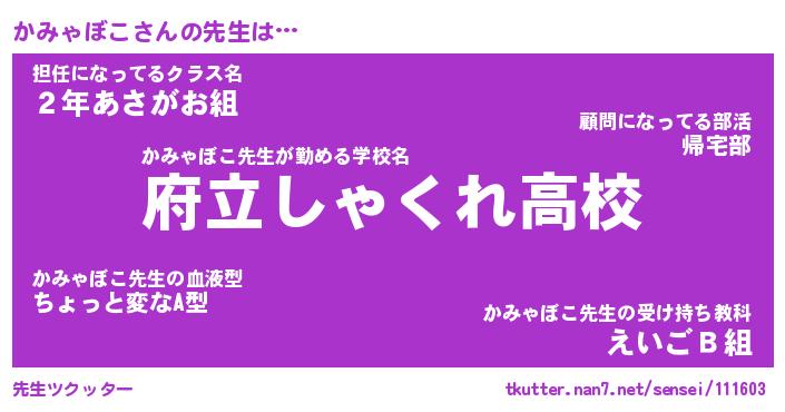 | ヒーロー風カッコイイあだ名 | 『スーパーカミャボコ』『魔戒騎士カミ』 |