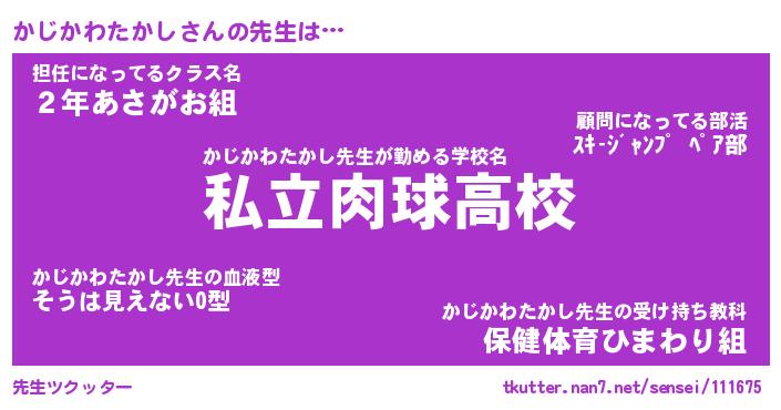 | 胡散臭い通販商品みたいなあだ名 | 『必ず成功するブレスレット…その名も「かじかわたかし」』 |