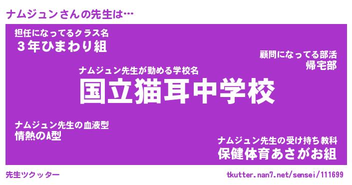 | ファンタジー風あだ名 | 『ナムフェル』『エターナルナムジュンー』 |