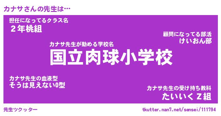 | ヒーロー風カッコイイあだ名 | 『スーパーカナサ』『ウルトラカナサマン』 |