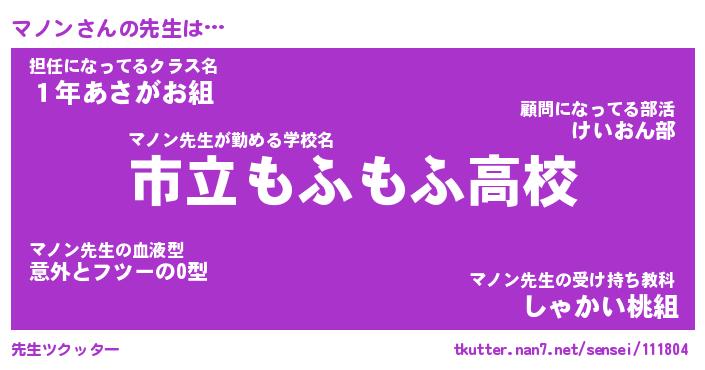 | 意味不明あだ名 | 『ペロリンマノン』『マノンフォーエバー』 |