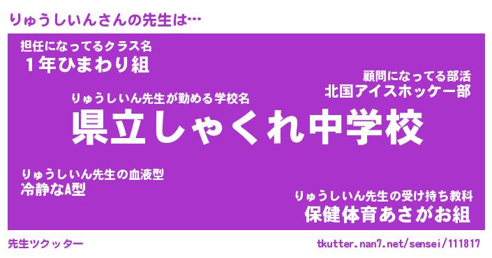 | 男性向けラノベタイトル風あだ名 | 『りゅうしいんの憂鬱』 |
