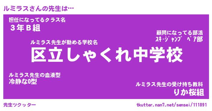 | 意味不明あだ名 | 『ペロリンルミラス』『永久保存ルミラス』 |