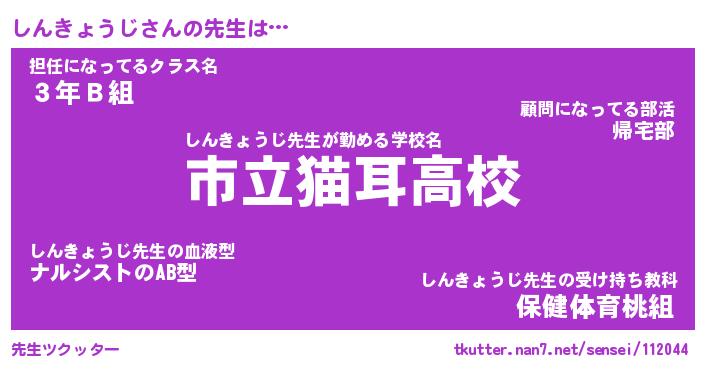 | 男性向けラノベタイトル風あだ名 | 『しんきょうじの憂鬱』 |