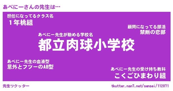 | 意味不明あだ名 | 『ペロリンあべにー』『永久保存あべにー』 |