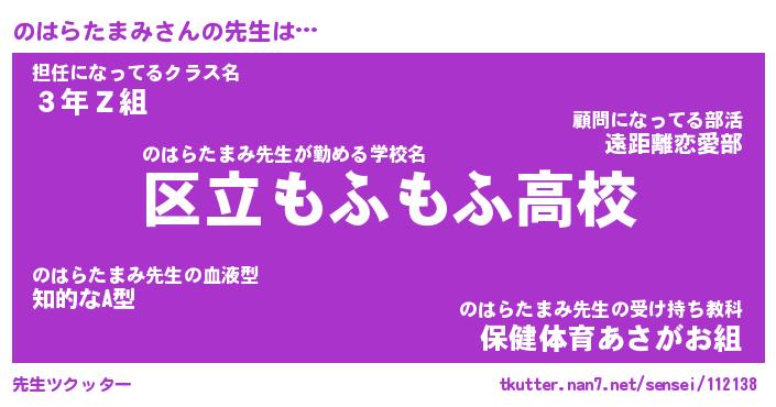 | 恥ずかしいあだ名 | 『プリティーのはらたまみ』『のはっちょ』 |