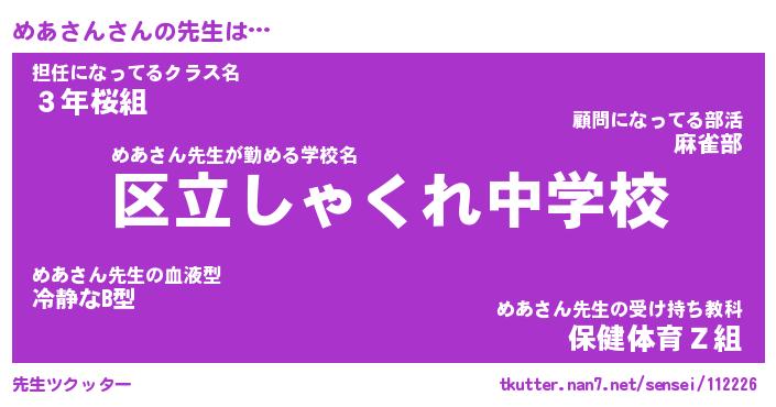 | 意味不明あだ名 | 『ペロリンめあさん』『永久保存めあさん』 |