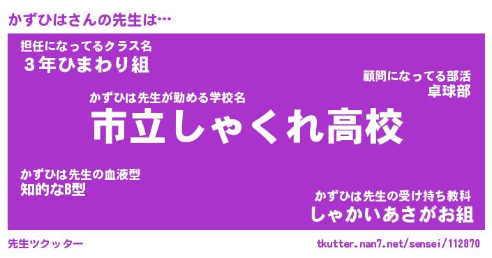 | ポケモン風あだ名 | 『カズチュウ』『カズヒダネ』 |