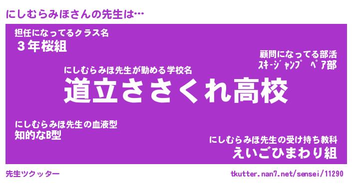 | ヒーロー風カッコイイあだ名 | 『スーパーニシムラミホ』『銀牙騎士ニシ』 |