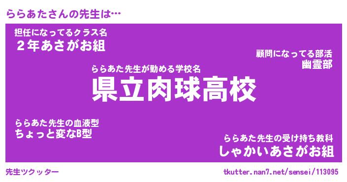 | 意味不明あだ名 | 『ペロリンららあた』『永久保存ららあた』 |