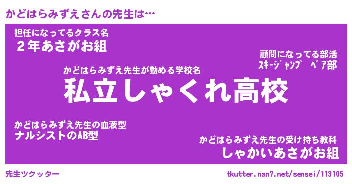 | 肩書あだ名 | 『かどはらみずえ御曹司』 |