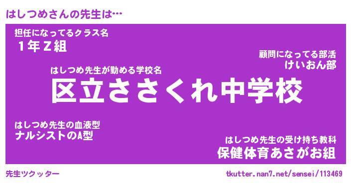 | 意味不明あだ名 | 『ペロリンはしつめ』『永久保存はしつめ』 |