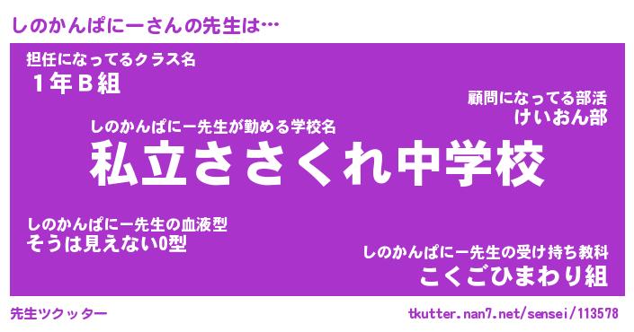 | 伝説のあだ名 | 『伝説のスナイパーしのかんぱにー』 |