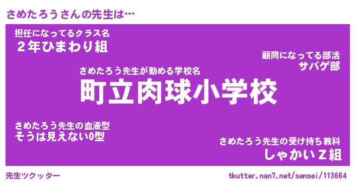 | ヘコむあだ名 | 『さめふぇ~』『なまこ酢』『さめを』 |