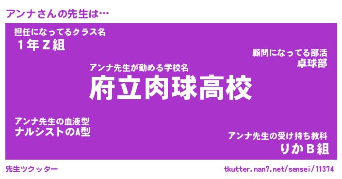 | 意味不明あだ名 | 『ペロリンアンナ』『アンナフォーエバー』 |