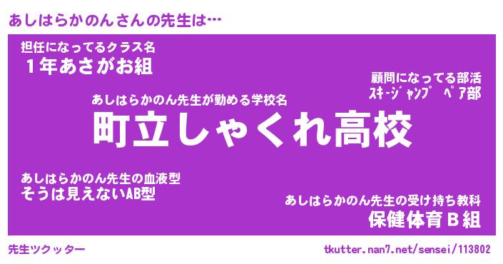| ヘコむあだ名 | 『あしっふぃ~』『つくし』『あしお』 |