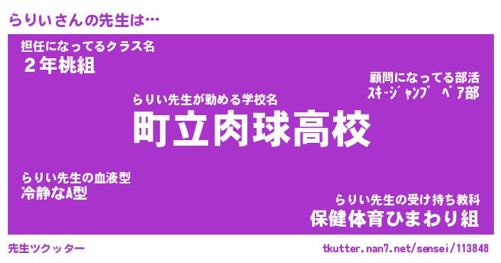 | ヘコむあだ名 | 『らりふぇ~』『なまこ酢』 |