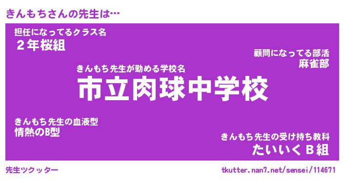 | ヘコむあだ名 | 『きんふぇ~』『なまこ酢』『きんを』 |