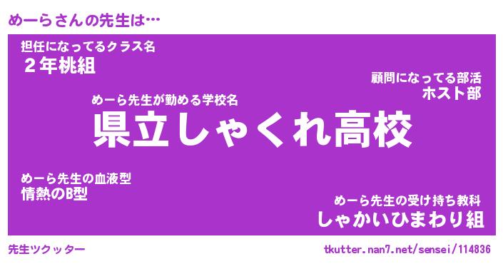 | ヘコむあだ名 | 『めーっふぃ~』『なまこ酢』 |