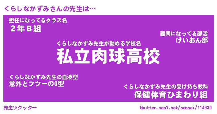 | 男性向けラノベタイトル風あだ名 | 『くらしなかずみの憂鬱』 |