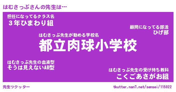 | ファンタジー風あだ名 | 『ハムフェル』『エターナルハムサップー』 |