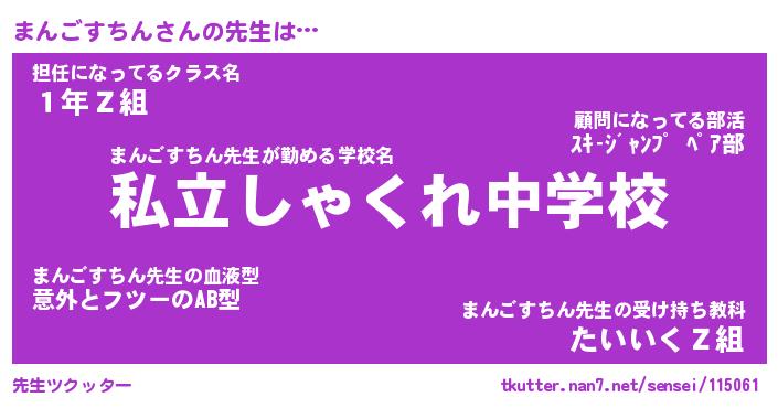 | 肩書あだ名 | 『まんごすちん御曹司』 |