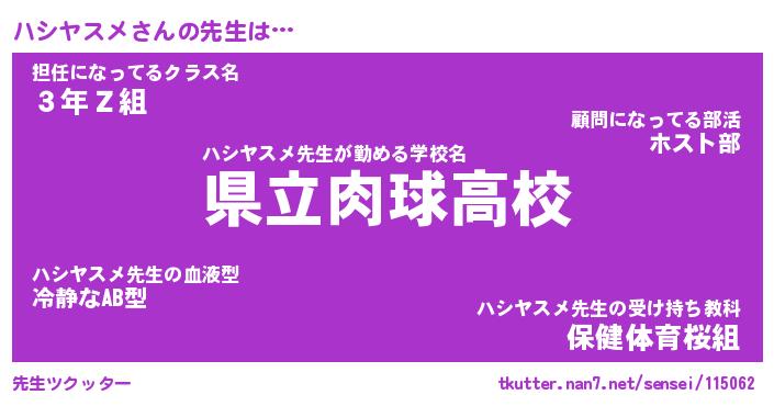 | ファンタジー風あだ名 | 『ハシフェル』『エターナルハシヤスメー』 |