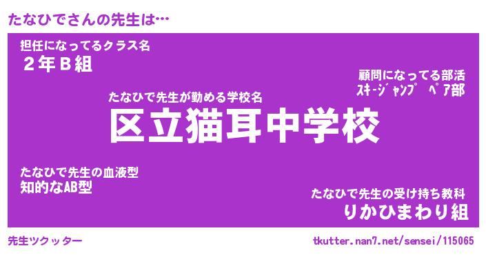 | ポケモン風あだ名 | 『タナチュウ』『タナヒダネ』 |