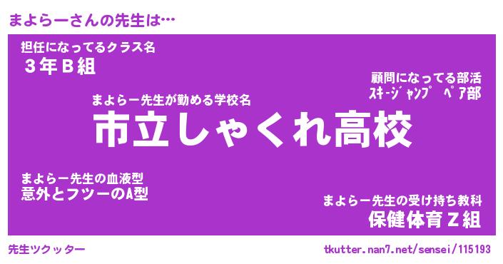 | 伝説のあだ名 | 『伝説のスナイパーまよらー』 |