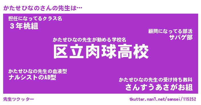 | ヒーロー風カッコイイあだ名 | 『スーパーカタセヒナノ』『天弓騎士カタ』 |