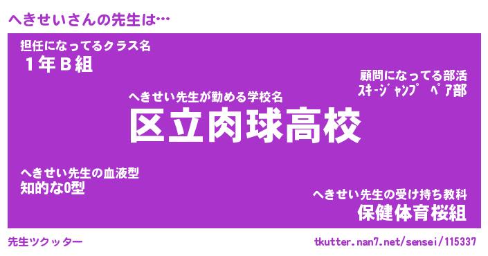 | 意味不明あだ名 | 『ペロリンへきせい』『永久保存へきせい』 |