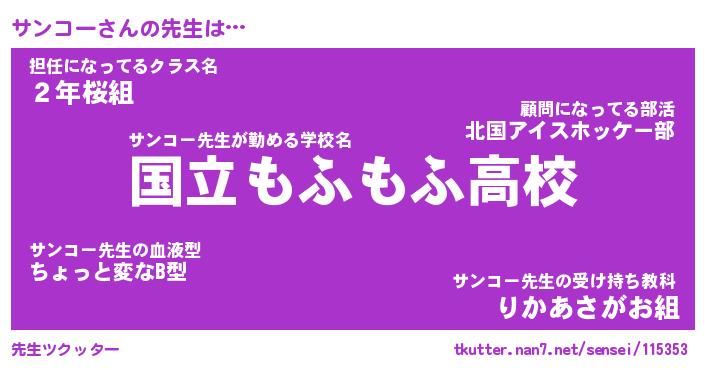 | ポケモン風あだ名 | 『サンチュウ』『サンコダネ』 |