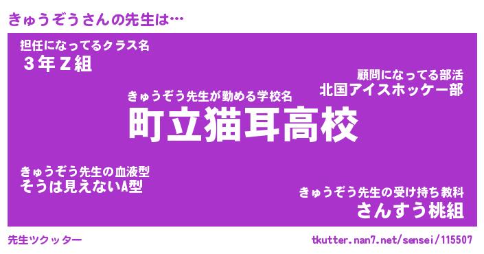 | ヒーロー風カッコイイあだ名 | 『スーパーキュウゾウ』『天弓騎士キュ』 |