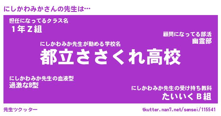 | ヘコむあだ名 | 『にしもー』『つくし』『にしっ子』 |
