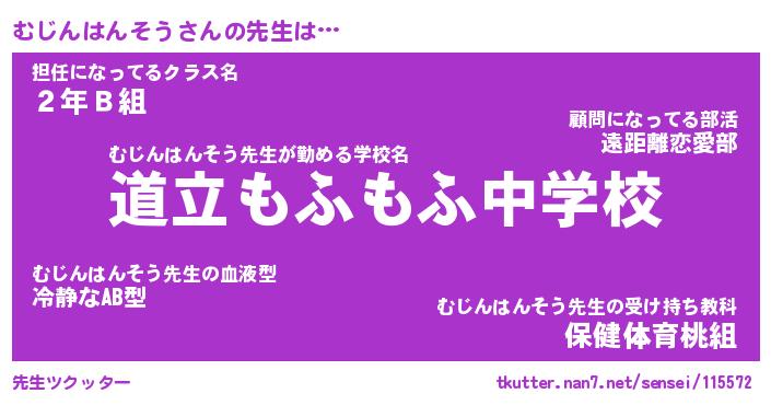 | ヘコむあだ名 | 『むじにゅー』『なまこ酢』『むじお』 |