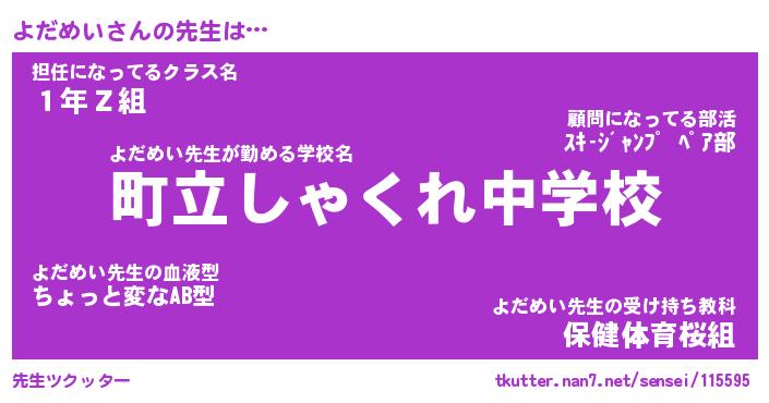 | 意味不明あだ名 | 『ペロリンよだめい』『永久保存よだめい』 |