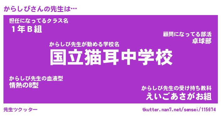 | ファンタジー風あだ名 | 『カラフェル』『エターナルカラシビー』 |
