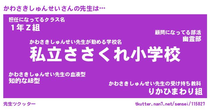 | 男性向けラノベタイトル風あだ名 | 『かわさきしゅんせいの憂鬱』 |