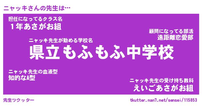 | 意味不明あだ名 | 『ペロリンニャッキ』『永久保存ニャッキ』 |