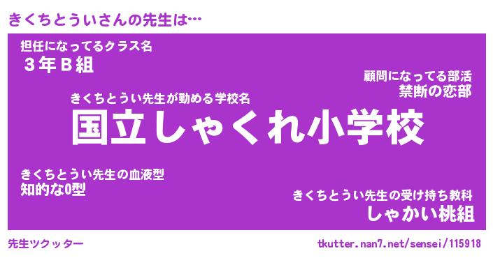 | 伝説のあだ名 | 『伝説のスナイパーきくちとうい』 |