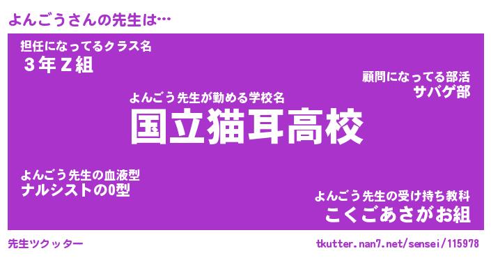| ポケモン風あだ名 | 『ヨンチュウ』『ヨンゴダネ』 |