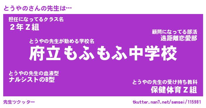 | ポケモン風あだ名 | 『トウチュウ』『トウヤダネ』 |
