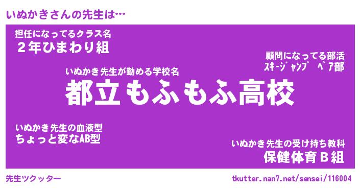 | 意味不明あだ名 | 『ペロリンいぬかき』『永久保存いぬかき』 |