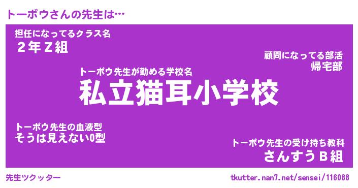 | 意味不明あだ名 | 『ペロリントーボウ』『永久保存トーボウ』 |