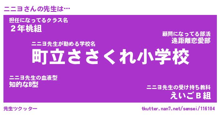 | ポケモン風あだ名 | 『ニニチュウ』『ニニヨダネ』 |