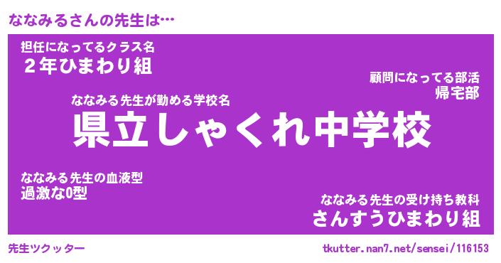 | ヘコむあだ名 | 『ななっふぃ~』『なまこ酢』 |