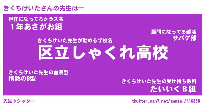 | 伝説のあだ名 | 『封印されしスナイパーきくちけいた』 |