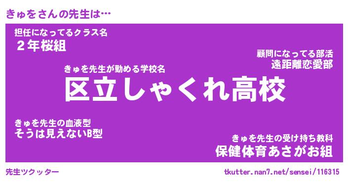 | 肩書あだ名 | 『きゅを御曹司』『きゅを国家主席』 |