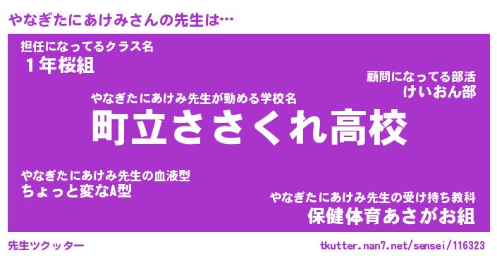 | 伝説のあだ名 | 『封印されしスナイパーやなぎたにあけみ』 |